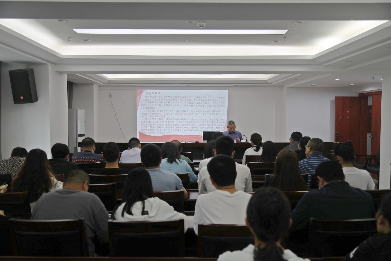 為做好企業(yè)普法宣傳工作,廣泛開展法律進企業(yè)法制宣傳教育活動,培養(yǎng)員工學法、懂法、用法法治思維,2022年5月25日下午,巴中發(fā)展控股集團舉辦了法律培訓,特邀請巴中市律師協(xié)會會長、四川砝鼎律師事務所主任朱曉光作專題培訓。集團總部員工,下屬企業(yè)風控負責人、法務、業(yè)務工作人員共計50余人參加本次培訓。培訓會議指出,現(xiàn)今契約文化的重要性不言而喻,合同是保障企業(yè)權利的命脈,要推動企業(yè)法律工作向管理型轉變,由事后救濟型向事前防范、事中控制型轉變,努力做好風險防控。