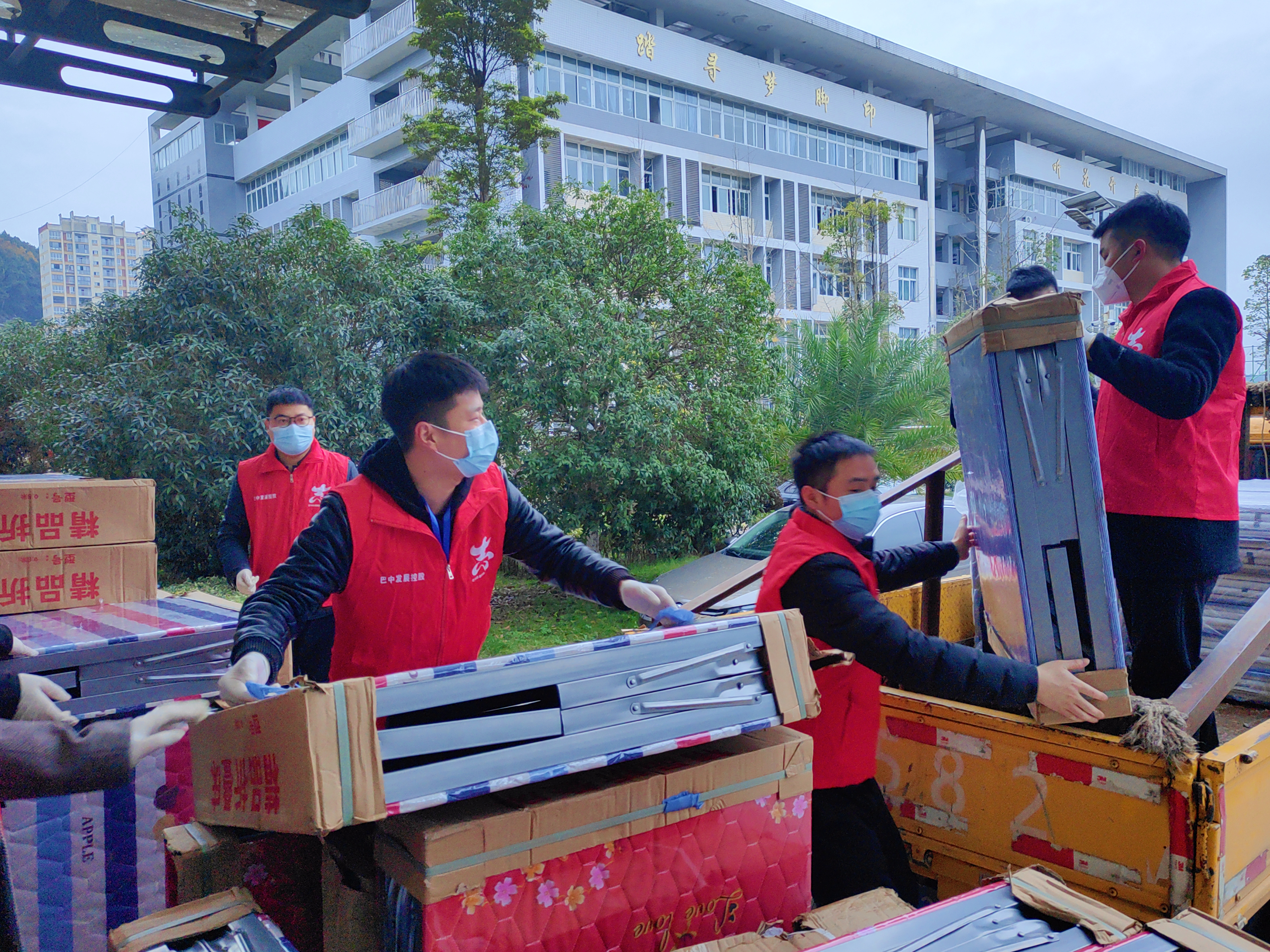 集團(tuán)黨委副書記、總經(jīng)理沈鵬帶隊(duì)到巴中中學(xué)、巴中高級中學(xué)以及巴中五中發(fā)放包括行軍床、醫(yī)用口罩、米面油等在內(nèi)的近5萬元抗疫物資。