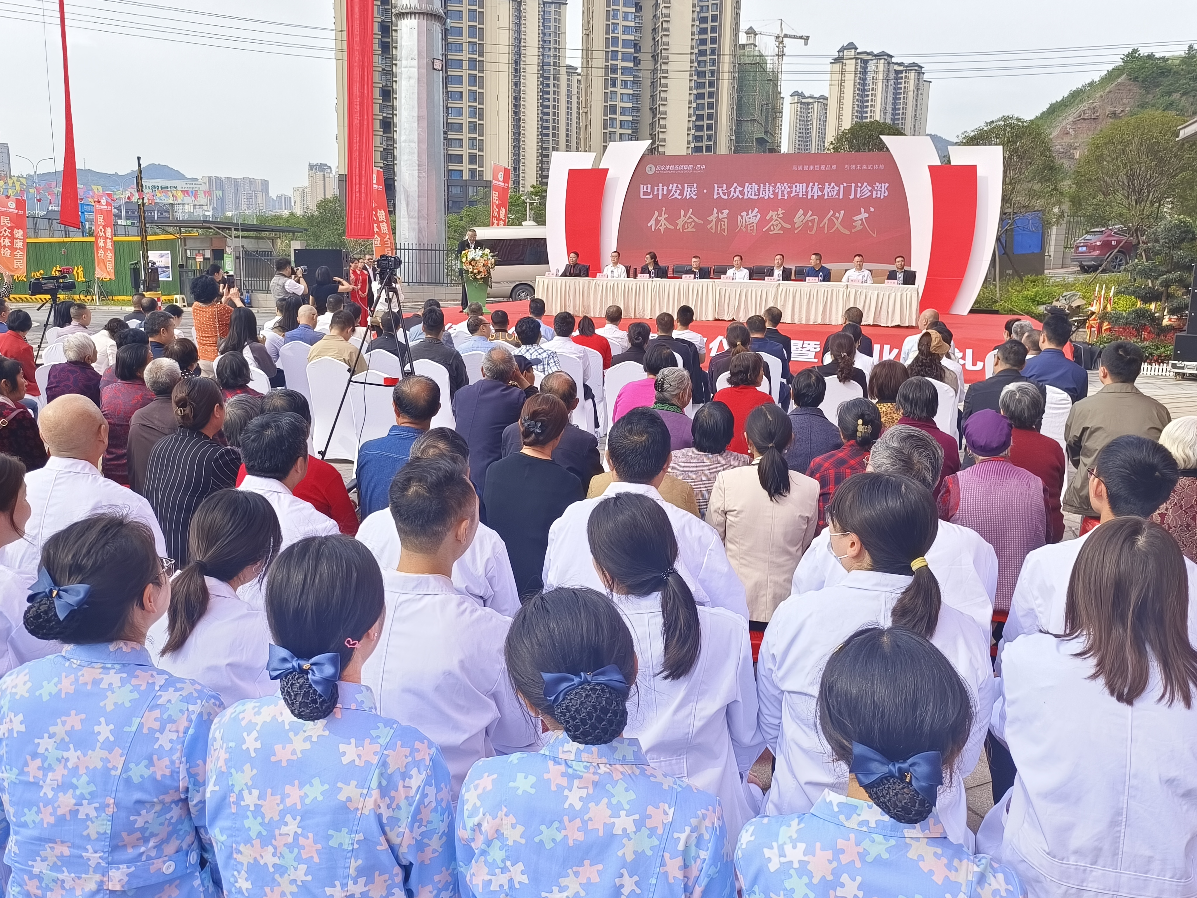 4月18日,位于回風(fēng)北路二段大溪家苑的巴中民眾健康管理體檢門診部外,彩旗飄揚(yáng)、鼓聲嘹亮,吸引了不少市民朋友駐足圍觀。上午9點(diǎn),巴中民眾健康管理體檢門診部健康體檢捐贈(zèng)簽約儀式舉行。巴中市政府副秘書長(zhǎng)石涌泉,巴州區(qū)委常委、宣傳部部長(zhǎng)羅福榮,巴中發(fā)展集團(tuán)黨委副書記、總經(jīng)理沈鵬,市總工會(huì)、市衛(wèi)健委、市住建局、市殘聯(lián)及縣(區(qū))相關(guān)單位負(fù)責(zé)人參加簽約儀式,隨后舉行了隆重的開(kāi)業(yè)典禮。