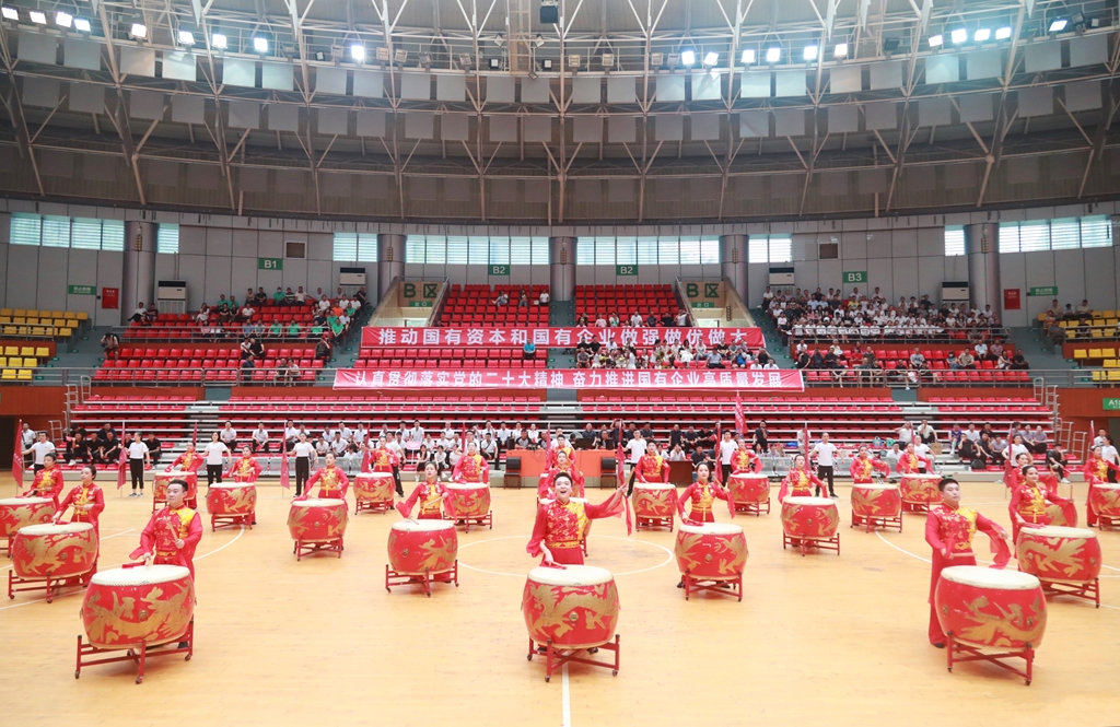 巴中發(fā)展集團(tuán)員工在全市國資系統(tǒng)職工運(yùn)動(dòng)會(huì)開幕式上表演自創(chuàng)文藝節(jié)目《領(lǐng)航筑夢(mèng)》